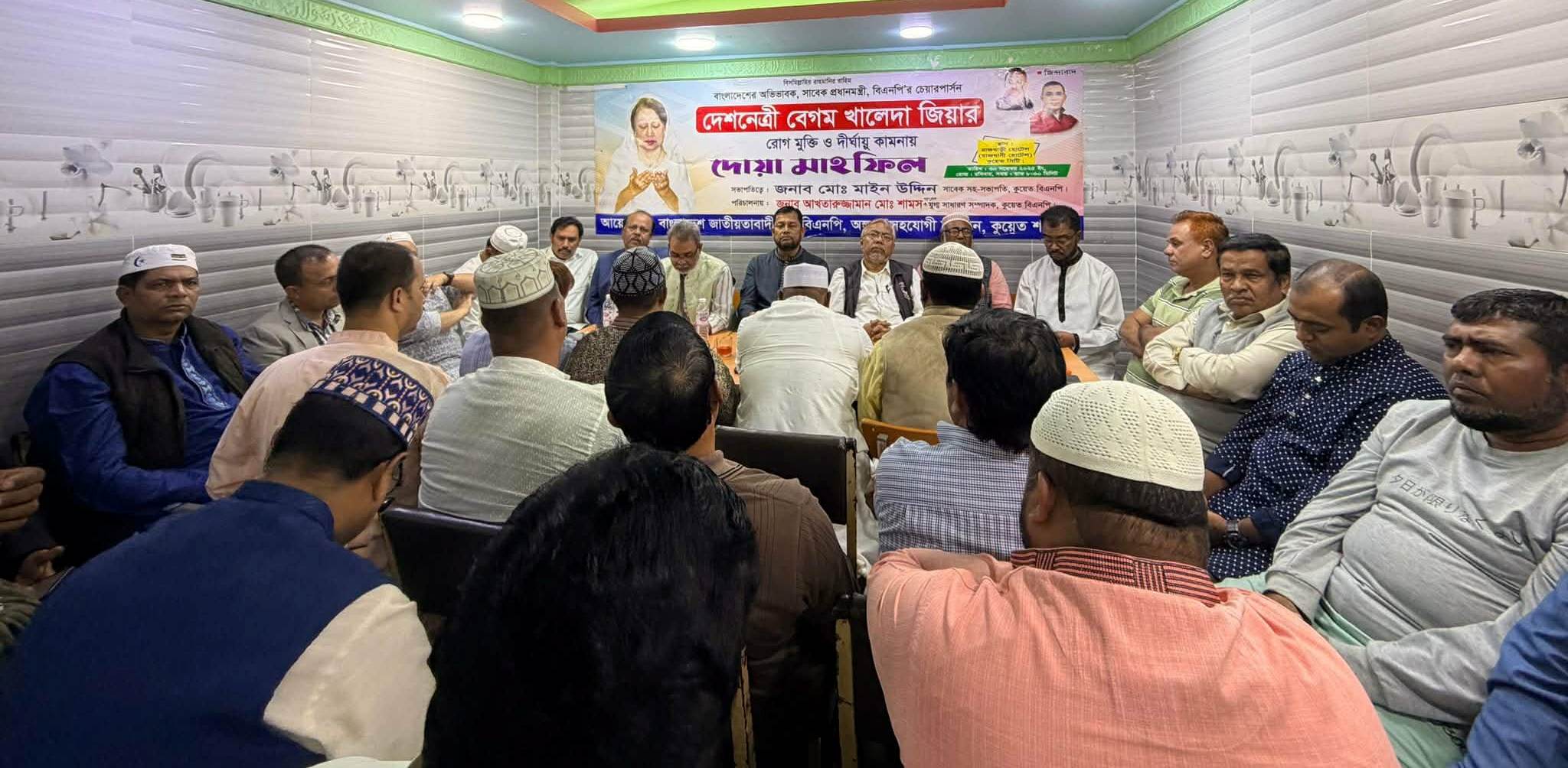 বাংলাদেশ জাতীয়তাবাদী দলের (বিএনপি) চেয়ারপারসন ও সাবেক প্রধানমন্ত্রী বেগম খালেদা জিয়া বর্তমানে গুরুতর অসুস্থ অবস্থায় রাজধানীর এভারকেয়ার হাসপাতালে চিকিৎসাধীন রয়েছেন। তার দ্রুত আরোগ্য ও সুস্থতার জন্য বিশ্ব জুড়ে রাজনৈতিক ও সামাজিক নানা মহল থেকে দোয়া ও প্রার্থনার আয়োজন চলছে। এই ধারাবাহিকতায়, কুয়েতে বিএনপি বিশেষ দোয়া মাহফিলের আয়োজন করেছে। রবিরার রাতে কুয়েত সিটির রাজবাড়ী রেস্টোরেন্টের হল রুমে বিএনপির চেয়ারপারসন ও সাবেক প্রধানমন্ত্রী বেগম খালেদা জিয়ার রোগমুক্তি ও সুস্থতা কামনায় বিশেষ দোয়া মাহফিলে আয়োজন করে কুয়েত বিএনপি। কুয়েত বিএনপির সাবেক সহ সভাপতি মাইন উদ্দিন মাইন এর সভাপতিত্বে এবং সাবেক যুগ্ম সম্পাদক আখতারুজ্জামান মোহাম্মদ শামস এর পরিচালনায় কুয়েত বিএনপি ও এর অঙ্গসংগঠনের উদ্যোগে এ দোয়া মাহফিল অনুষ্ঠিত হয়। দোয়া মাহফিলে উপস্থিত ছিলেন, কুয়েত বিএনপির সিনিয়র নেতা সোয়েব আহমেদ, ইউসুফ পাটোয়ারী, জায়েদুর রহমান, মীর মোসারফ হোসেন, লিটন মিয়াজী, সেলিম খান, জাফর ইকবাল পলাশ, ফাইজুর রহমান সুমন সহ আরো অনেকে। দেশনেত্রীর দ্রুত আরোগ্য কামনায় বিশেষ দোয়া ও মোনাজাত অংশ নেন প্রবাসী নেতা কর্মীরা।